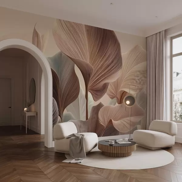 Papier peint photo Feuilles élégantes dans des tons beiges chauds N° w04549v1