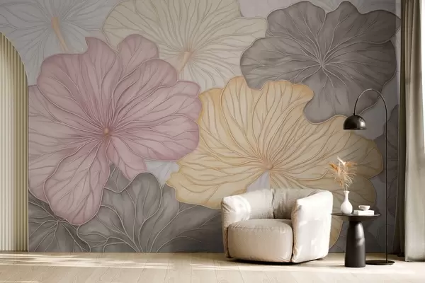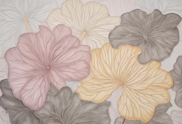Papier peint photo Grandes feuilles pastel avec de fines nervures N° w04612