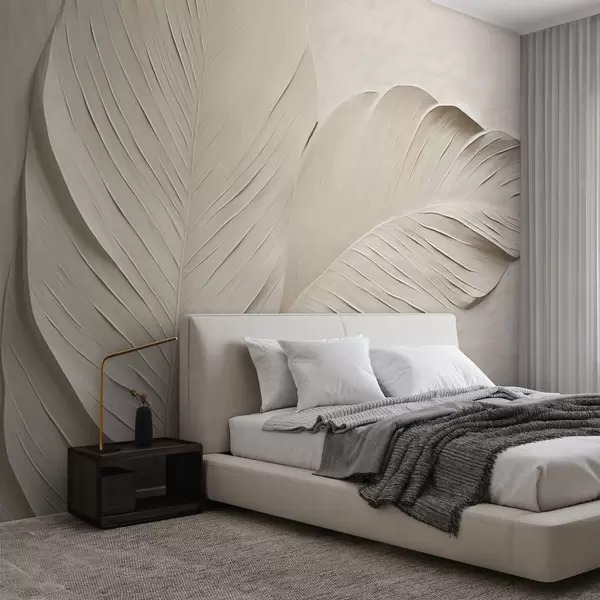 Papier peint photo Feuilles beiges en relief avec des ombres douces N° w04614