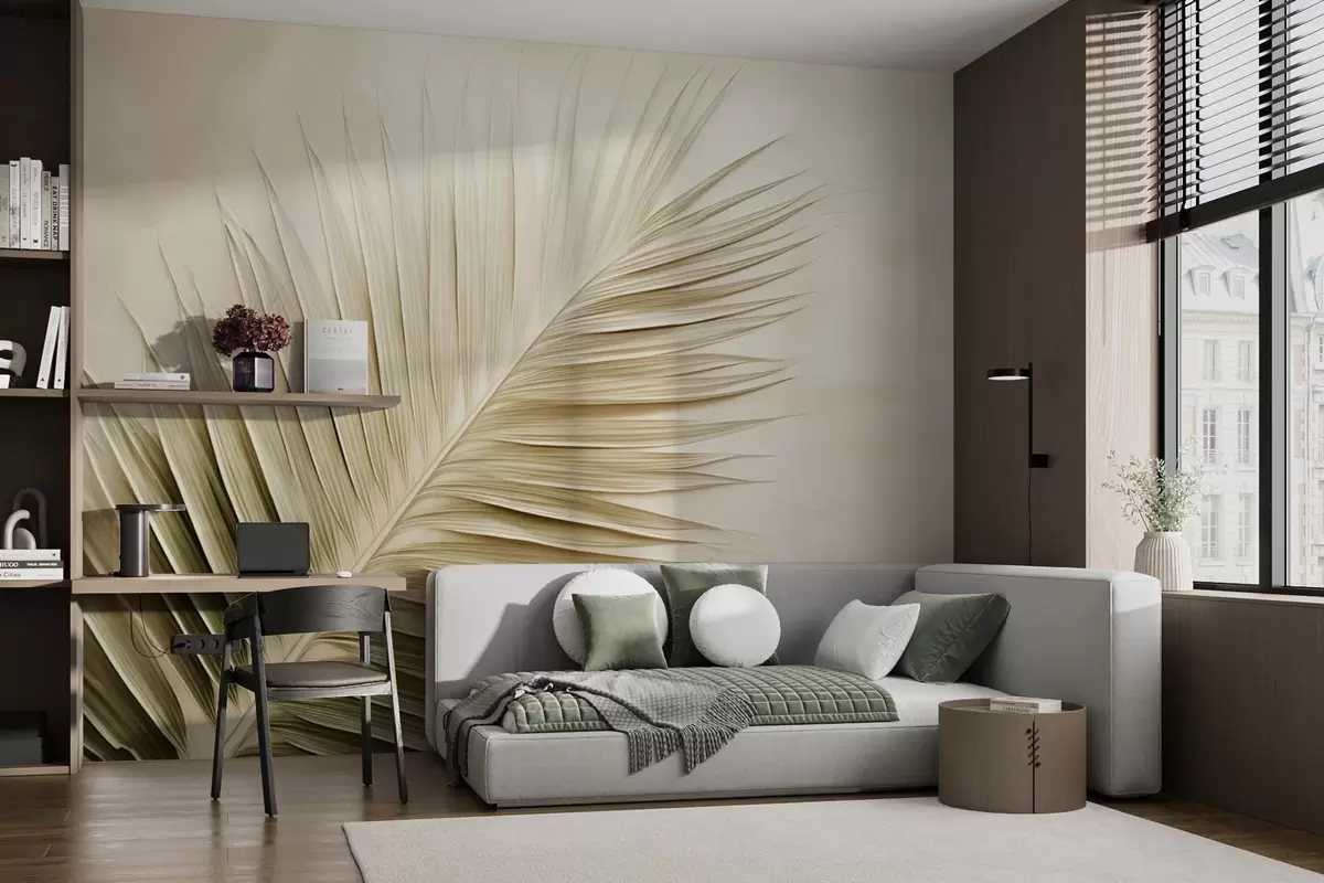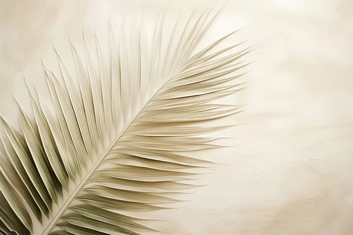 Papier peint photo Feuille de palmier beige sur fond texturé doux N° w04618