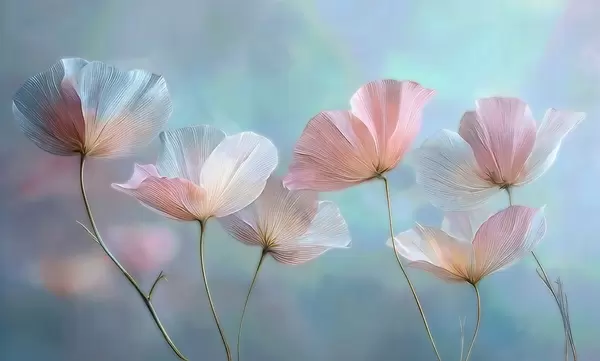 Papier peint photo Pétales transparents dans des tons pastel rose et bleu N° w04621