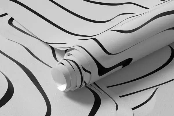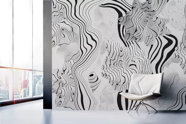 Papier peint photo formes organiques abstraites en 3D dans des tons blancs et gris avec des rayures noires N° w04627