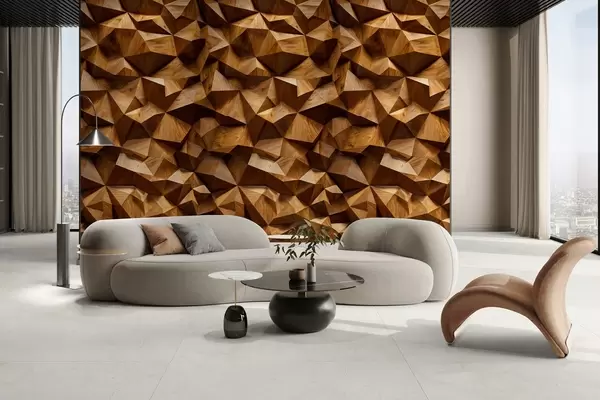 Papier peint photo imitation d'un mur en relief angulaire en bois N° w04632