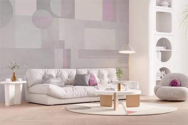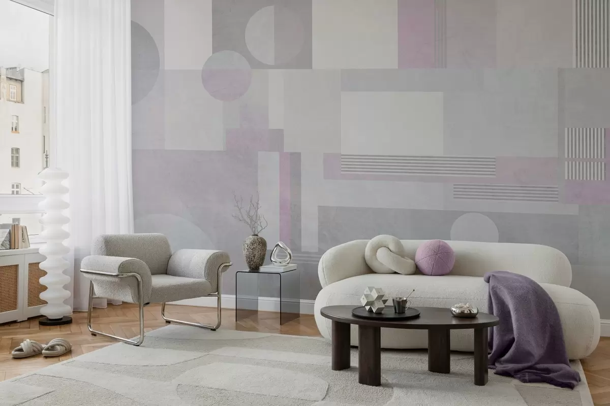 Papier peint photo géométrie abstraite dans les tons gris et lavande N° w04635v1