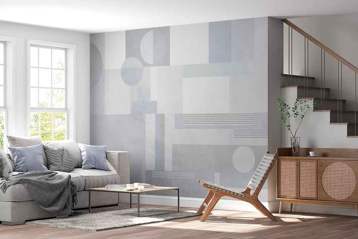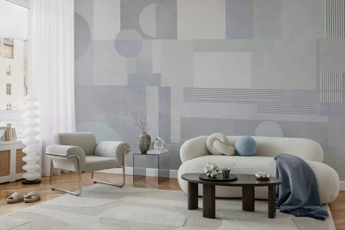 Papier peint photo géométrie abstraite dans des tons gris-bleu N° w04635v2