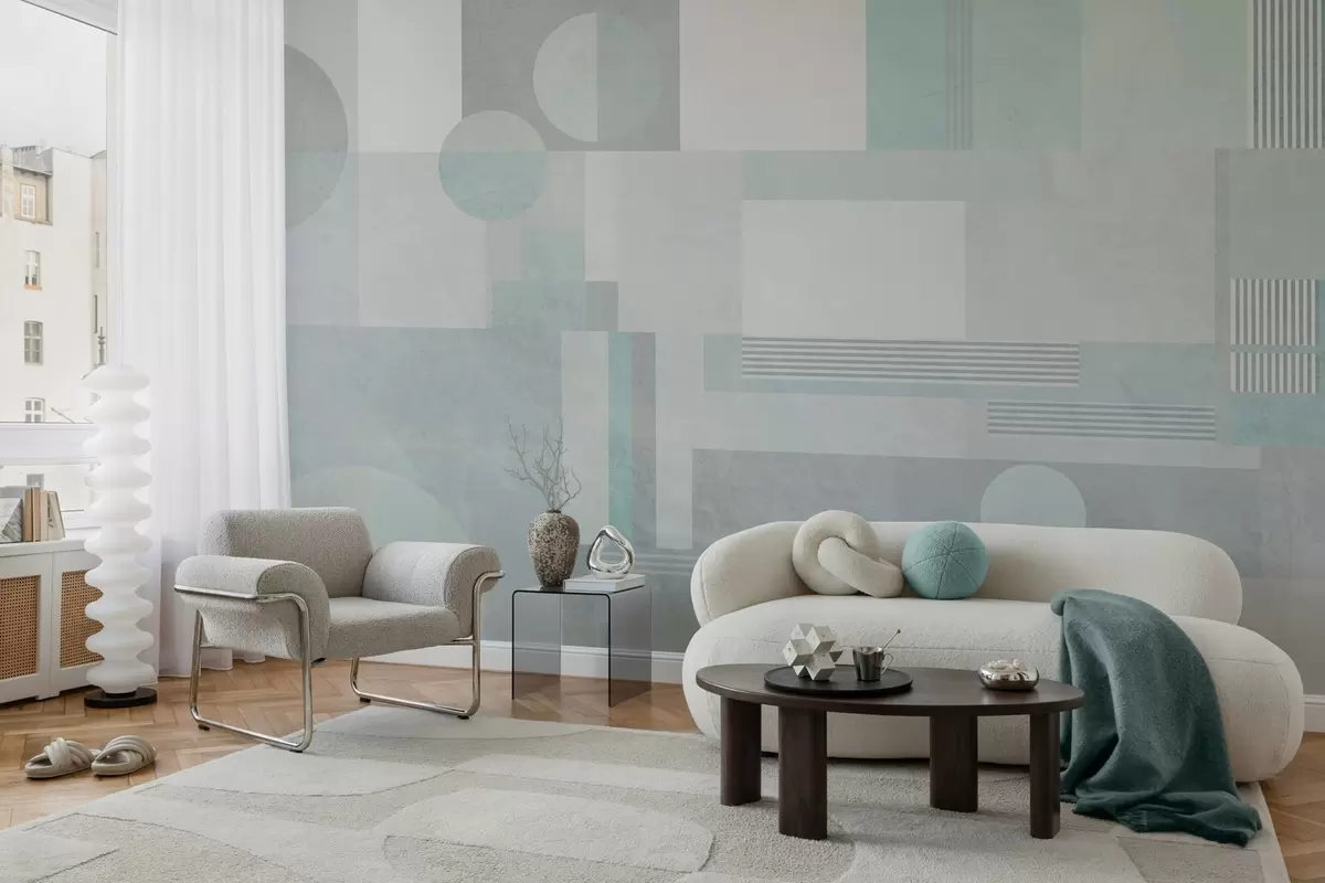 Papier peint photo géométrie abstraite dans des tons gris-vert N° w04635v3
