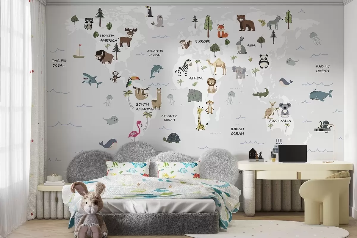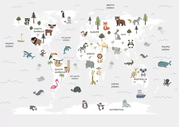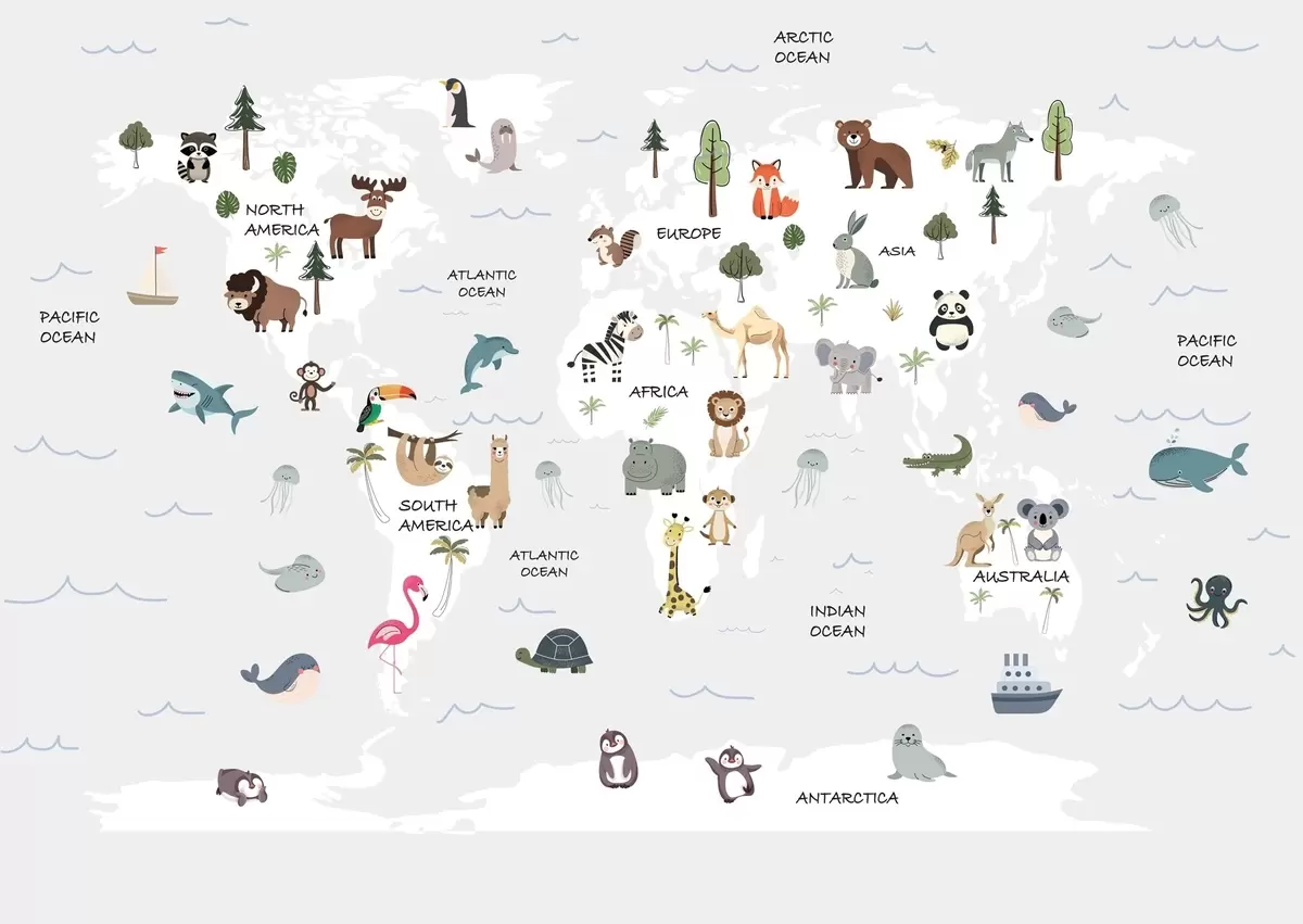 Papier peint photo Carte du monde avec des animaux N° w04663