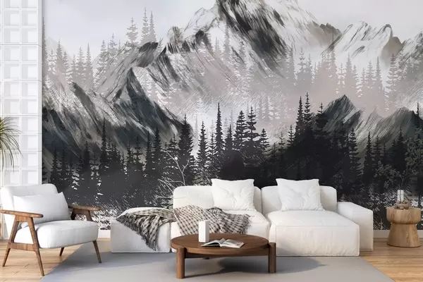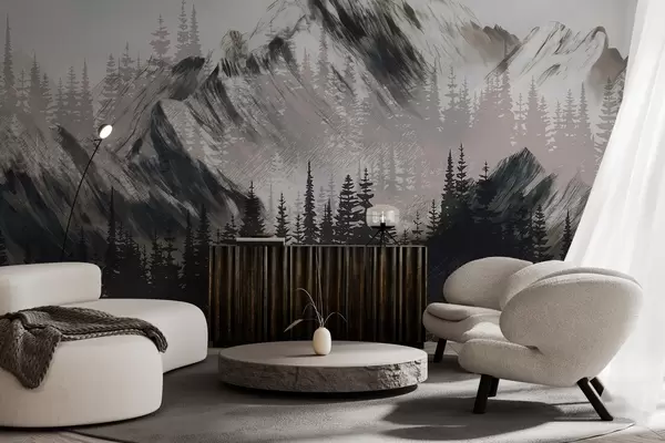 Papier peint photo Montagnes et forêt de conifères N° w04666