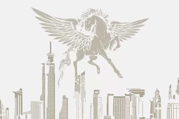 Papier peint photo Pégase au-dessus de la ville N° w04777