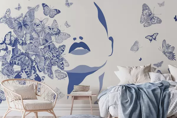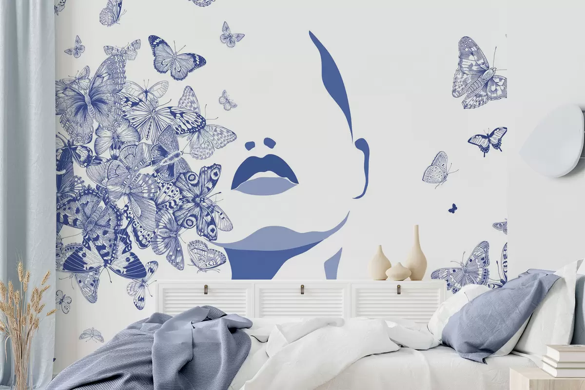 Papier peint photo Silhouette d'un visage parmi les papillons N° w04778v1