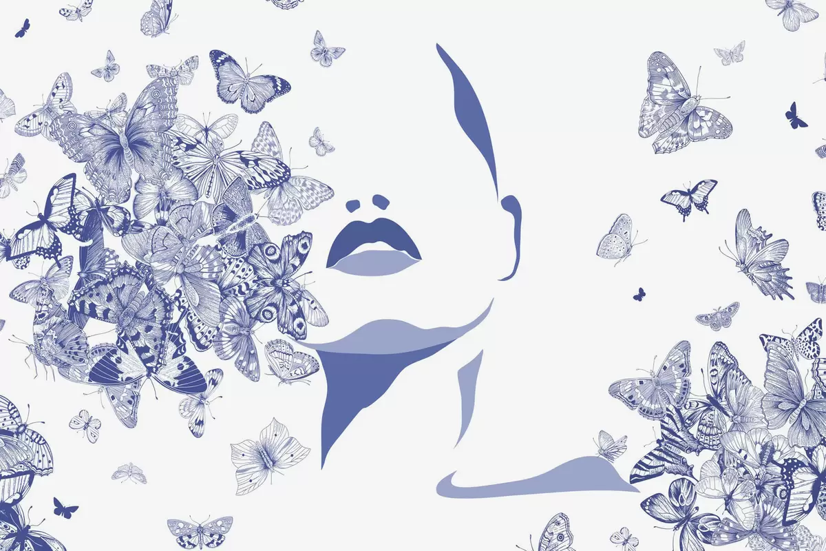 Papier peint photo Silhouette d'un visage parmi les papillons N° w04778v1