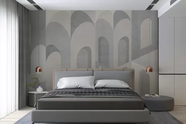 Papier peint photo métamorphoses urbaines de l'arche dans des tons gris et beige froid N° w04812v1