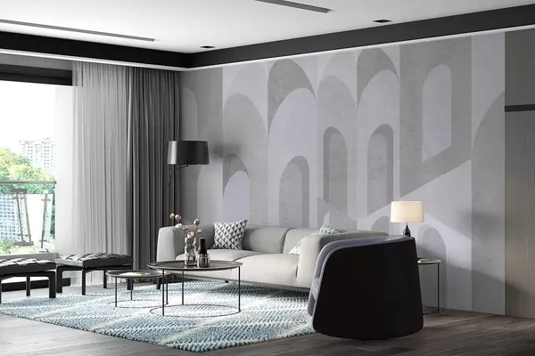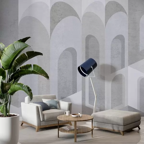 Papier peint photo métamorphoses urbaines de l'arche dans des tons gris et bleus N° w04812v2