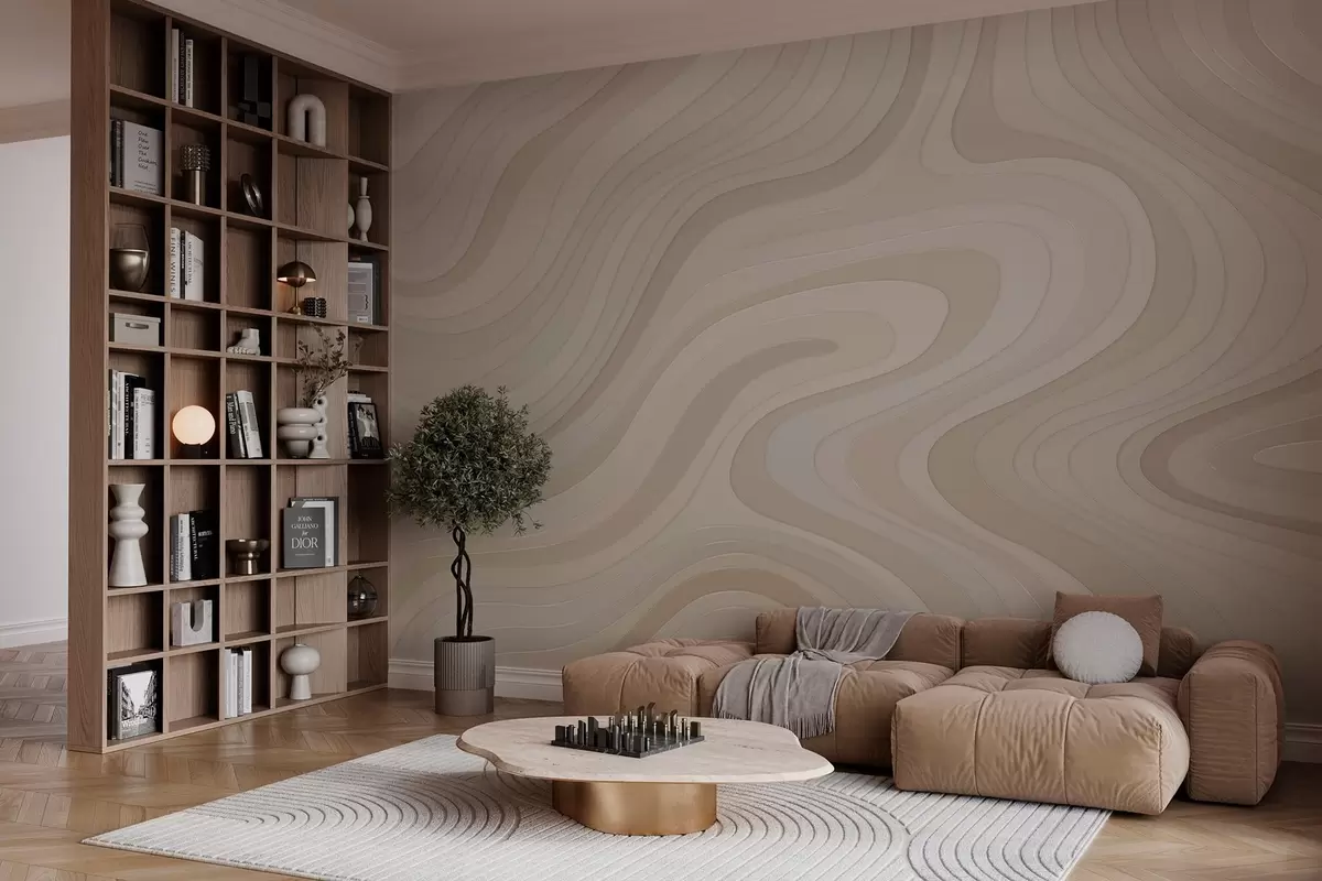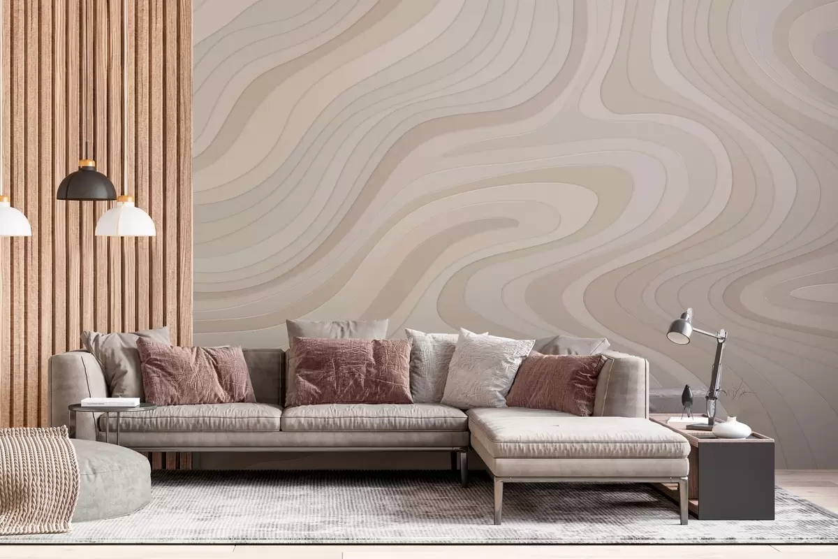 Papier peint photo vagues abstraites dans des tons poudrés N° w04813