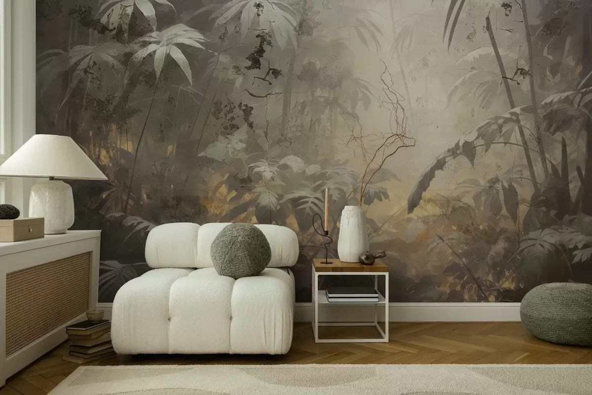 Papier peint photo Jungle peinte derrière un mur de béton grunge N° w04833