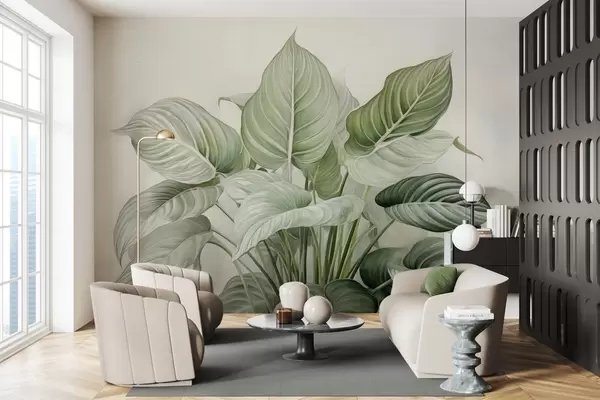 Papier peint photo Buisson luxuriant de feuilles vertes sur le mur N° w04835