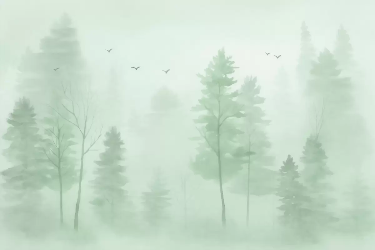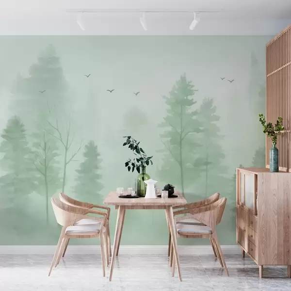 Papier peint photo forêt aérienne dans les tons verts, style aquarelle N° w04872v1