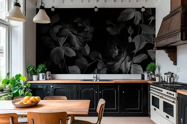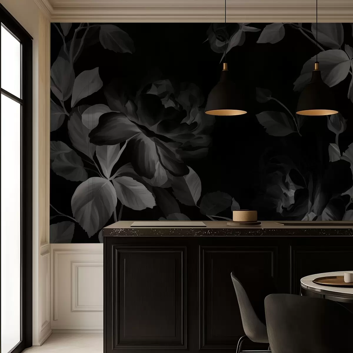 Papier peint photo roses pittoresques en noir et blanc dans le style de la peinture à l'huile N° w04873v1