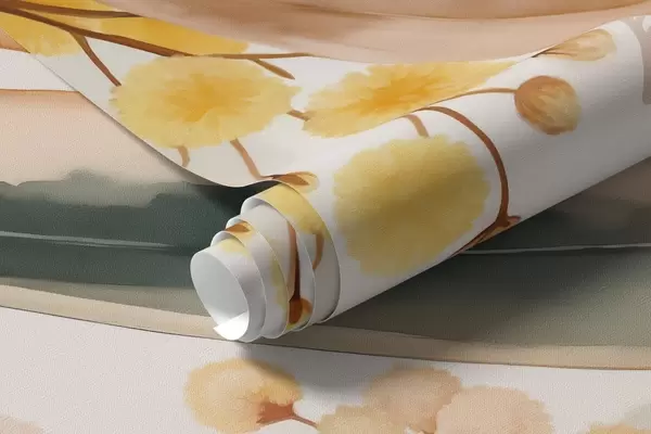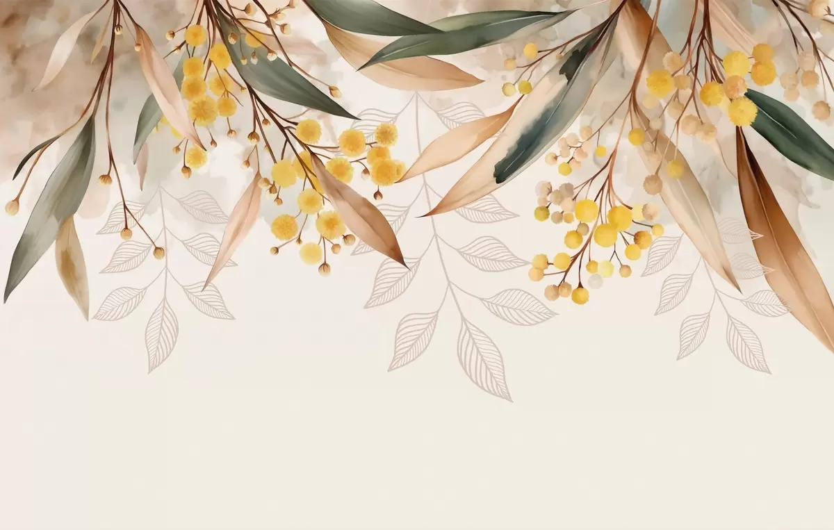 Papier peint photo fleurs et feuilles de mimosa tombant du ciel dans un style aquarelle N° w04880