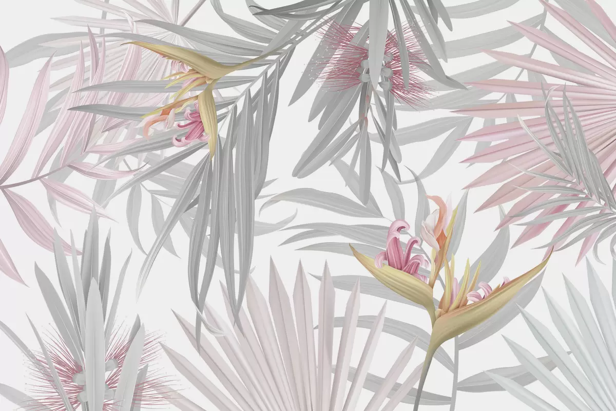Papier peint photo Strelitzia dans le feuillage des palmiers N° w04896