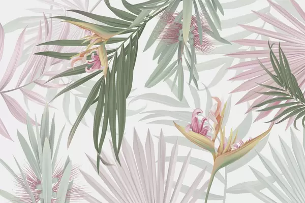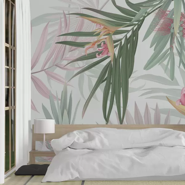 Papier peint photo Strelitzia dans le feuillage des palmiers N° w04896v2
