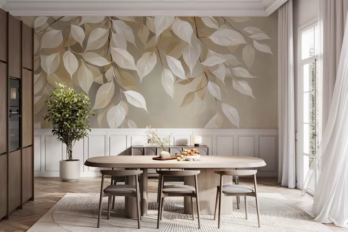 Le papier peint est divisé en bandes pratiques d'une largeur maximale de 50 cm