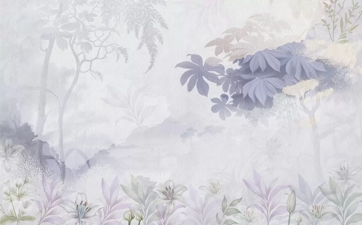 Papier peint photo Jardin délicat peint à l'aquarelle à l'aube brumeuse N° w04934