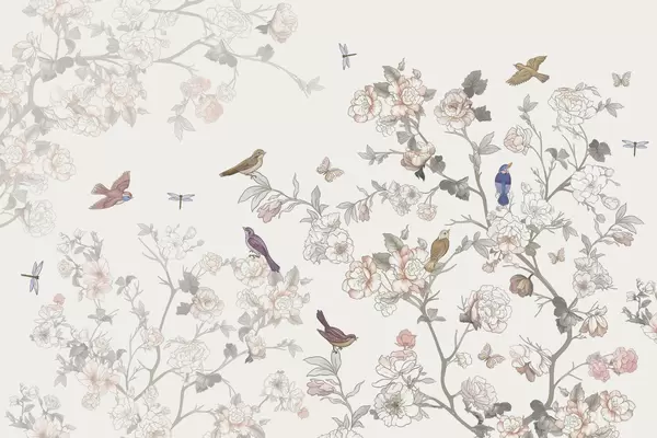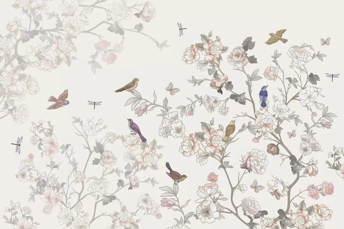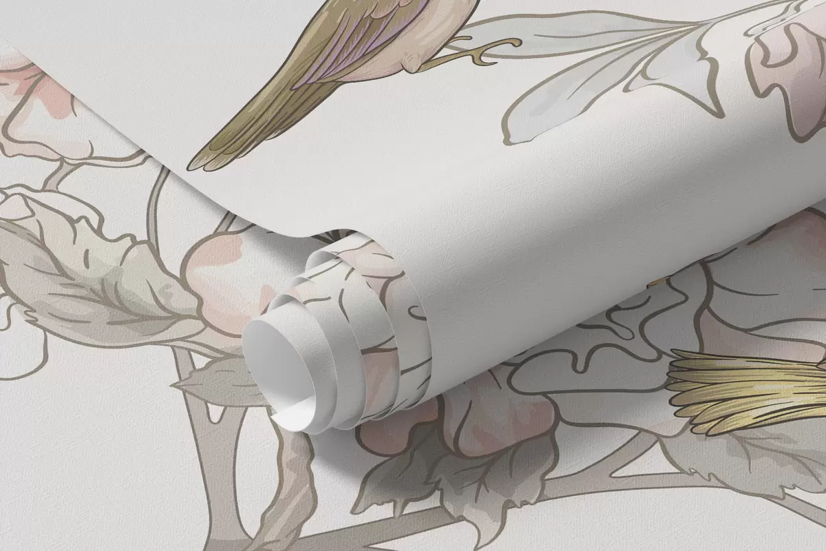 Papier peint photo Oiseaux près de branches fleuries N° w04939