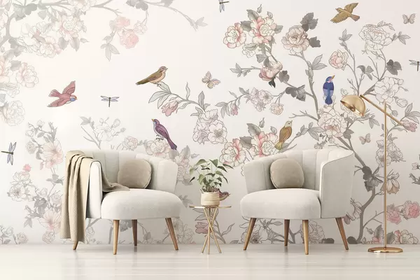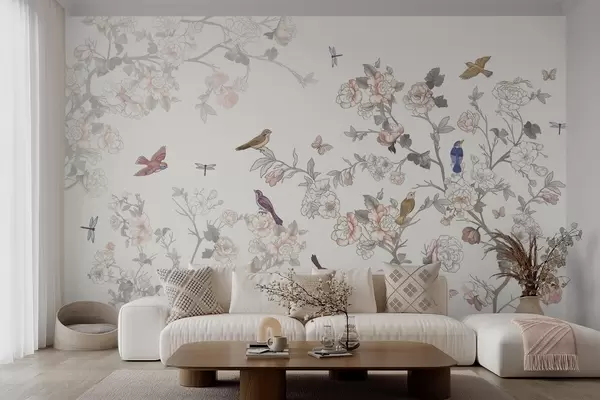 Papier peint photo Oiseaux près de branches fleuries N° w04939