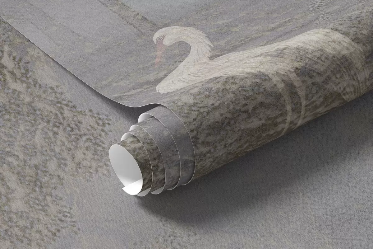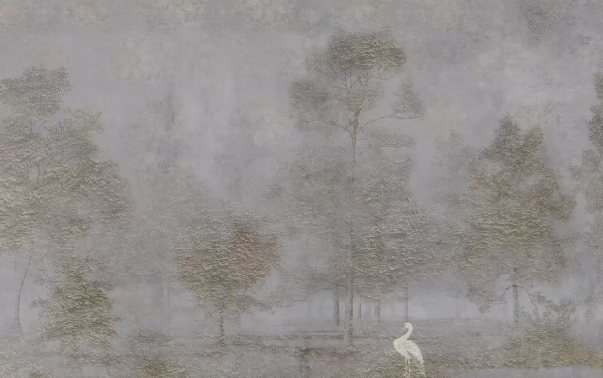 Papier peint photo Forêt brumeuse avec un héron blanc et une texture douce N° w04953