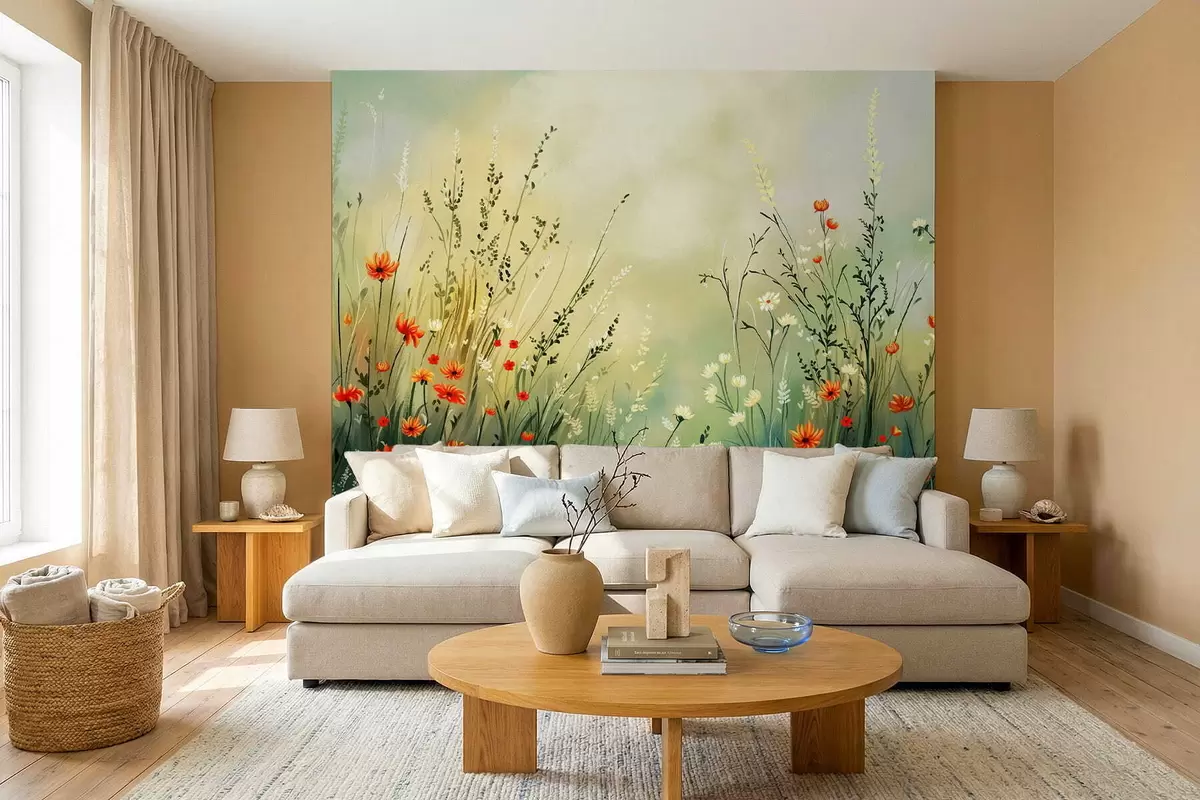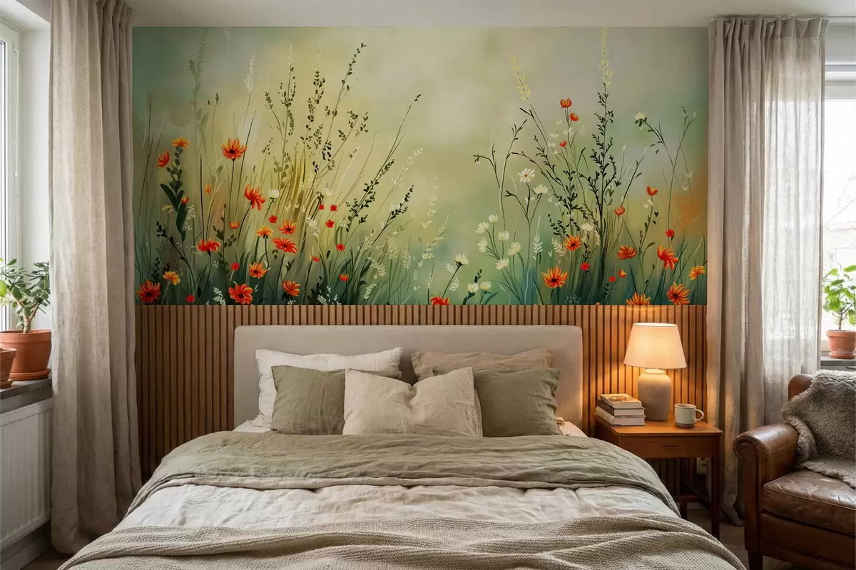 Papier peint photo Fleurs des champs et herbes dans un style pictural doux N° w05015
