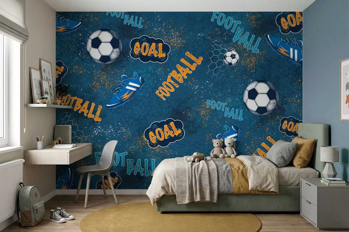 Papier peint photo Motif pour enfants avec ballons, chaussures et mots sportifs N° w05037