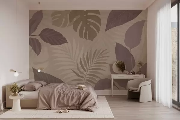 Papier peint photo feuilles tropicales texturées sur fond sableux N° w05063
