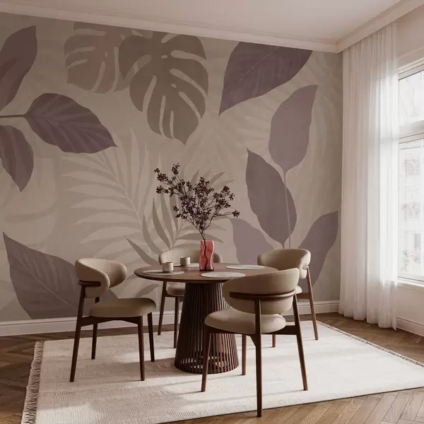 Papier peint photo feuilles tropicales texturées sur fond sableux N° w05063