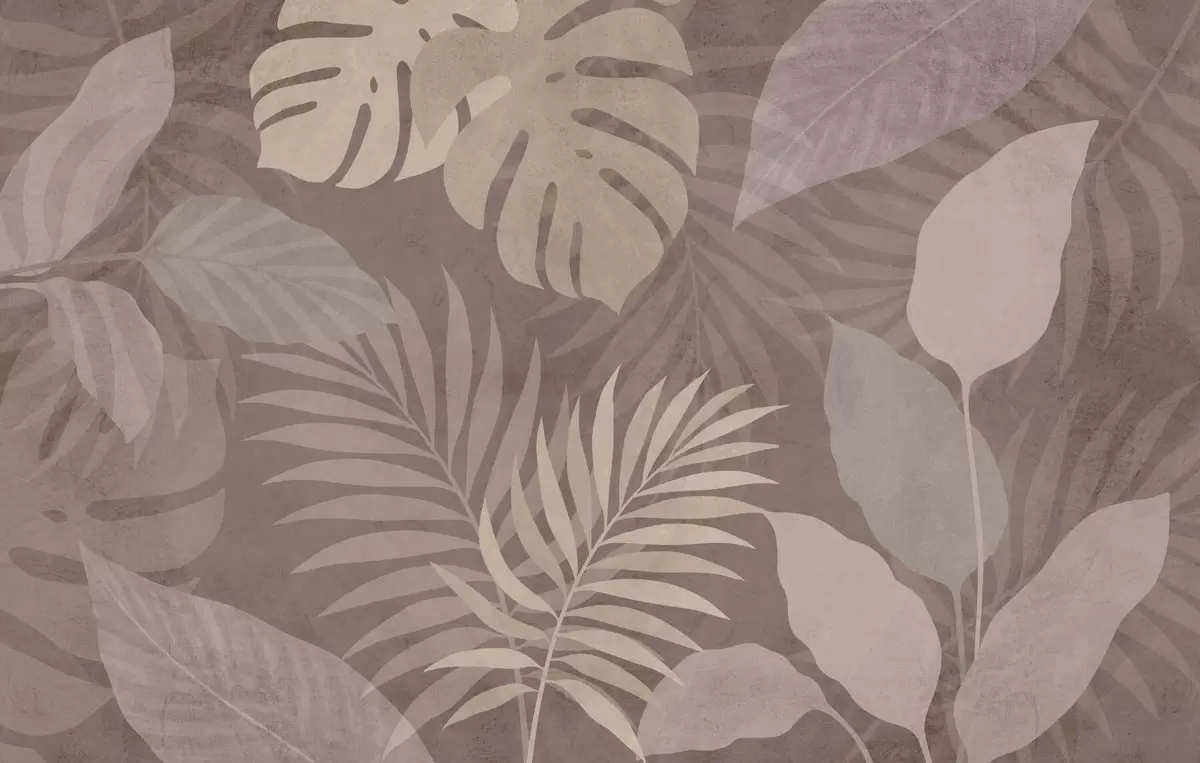 Papier peint photo feuilles tropicales texturées sur fond chocolat N° w05063v2