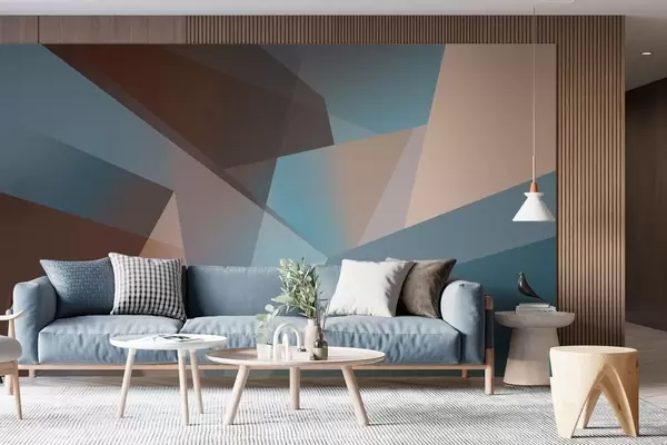 Papier peint photo géométrie abstraite dans les tons bleus et bruns N° w05064