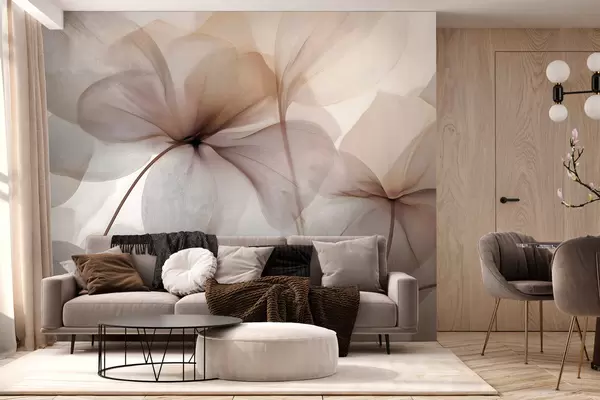 Papier peint photo fleurs semi-transparentes avec des nervures N° w05070