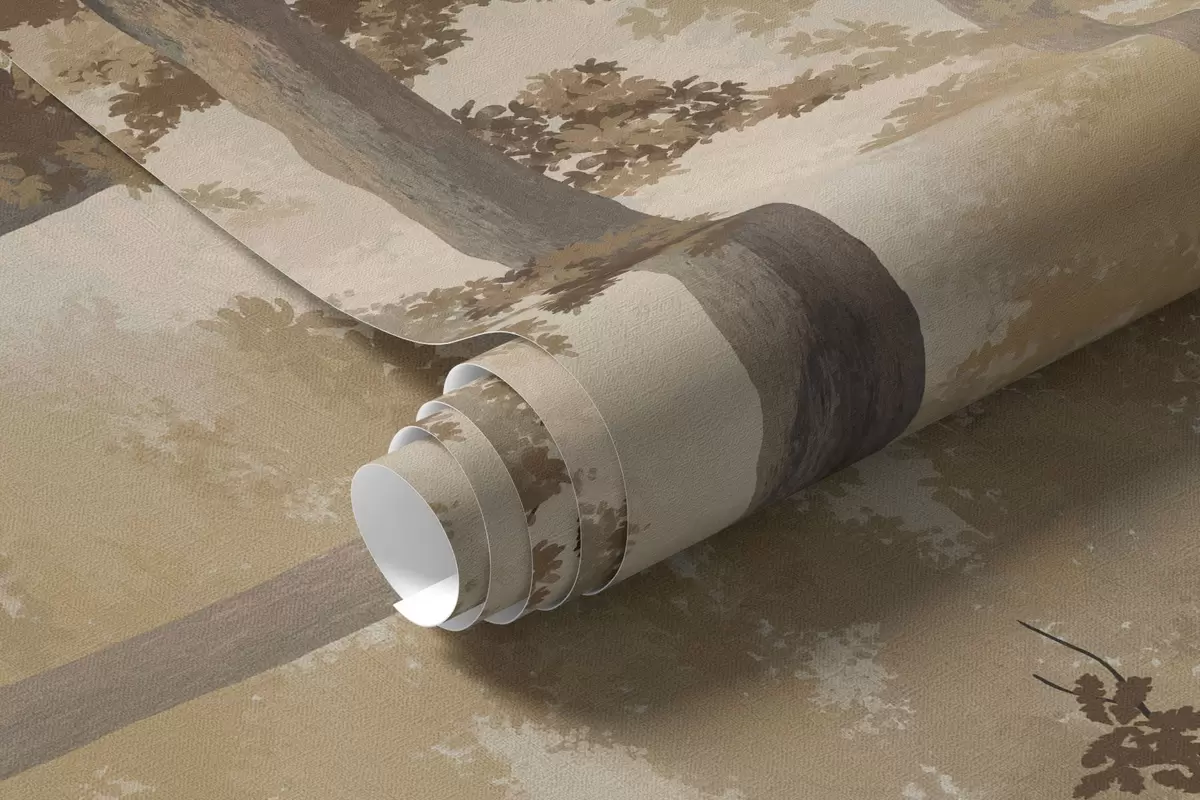 Papier peint photo Scène automnale dans la forêt avec une lumière chaude et des arbres denses N° w05089v1