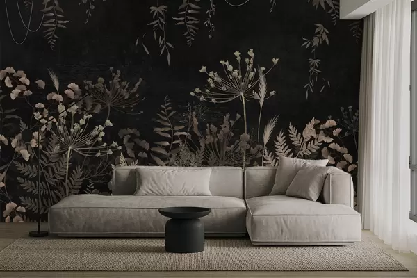 Papier peint photo Motif botanique sombre avec des fleurs et des feuilles N° w05092