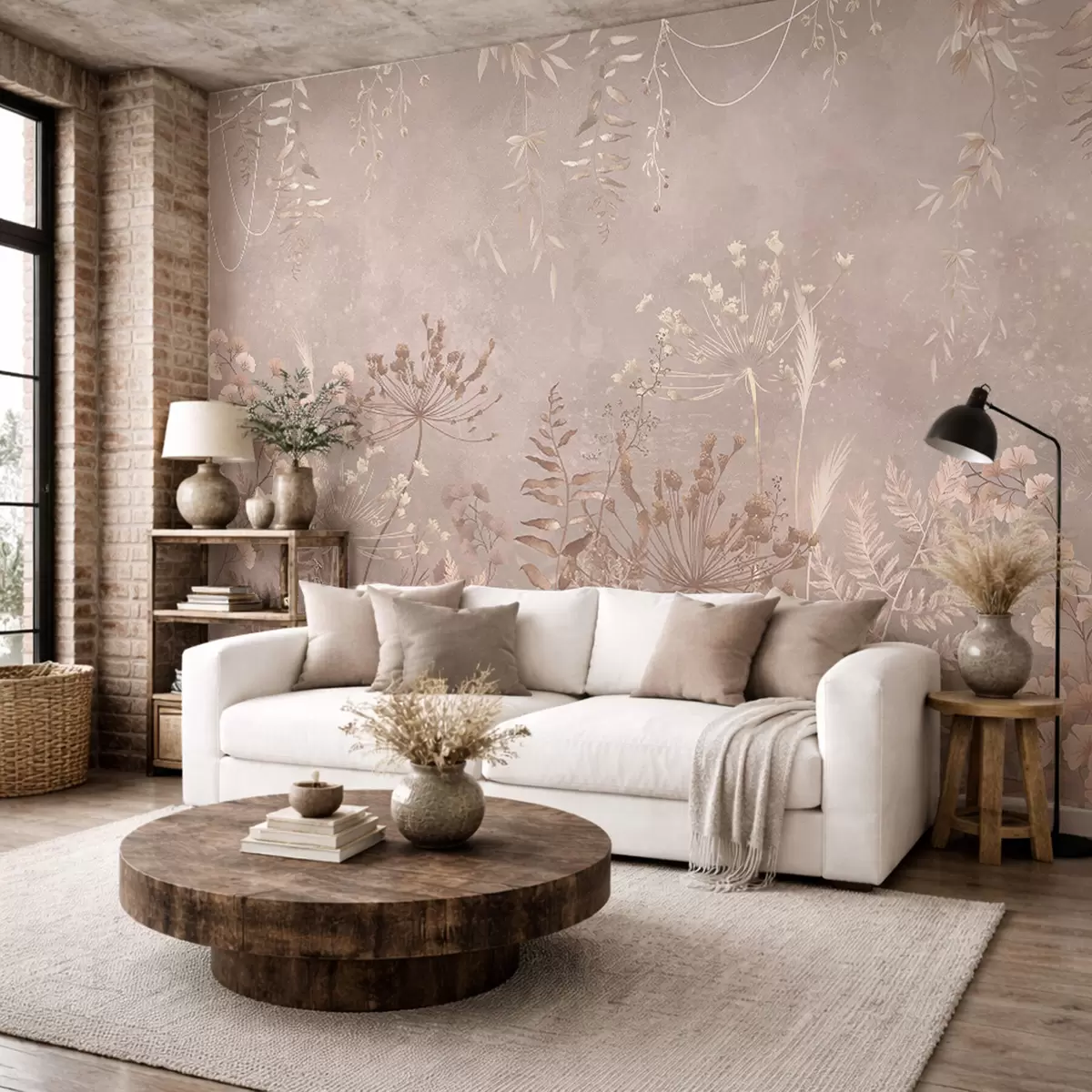 Papier peint photo Motif botanique beige clair avec des fleurs sauvages N° w05092v2