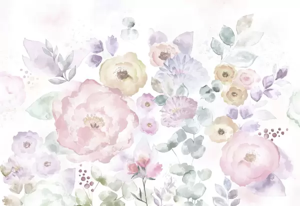 Papier peint photo Composition douce à l'aquarelle avec des fleurs et des feuilles N° w05093