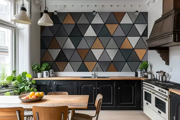 Papier peint photo Motif triangulaire avec des nuances grises et chaudes N° w05095v1