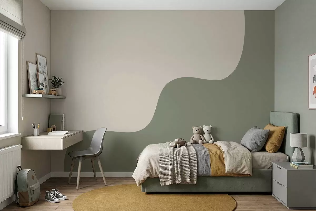 Papier peint photo Formes abstraites douces dans des tons beige clair et vert N° w05097