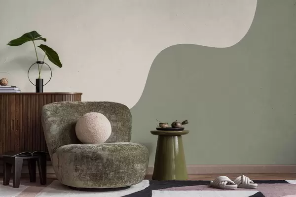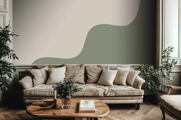 Papier peint photo Formes abstraites douces dans des tons beige clair et vert N° w05097