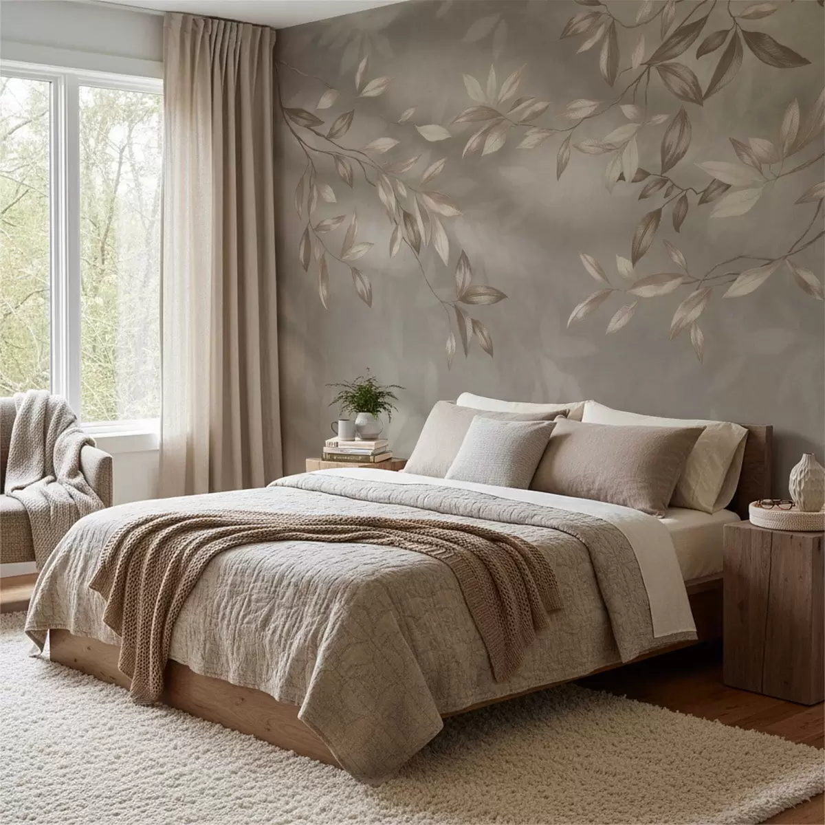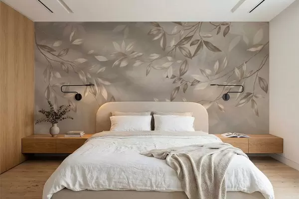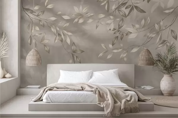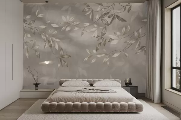 Papier peint photo Élégantes branches feuillues dans des tons beiges sur fond clair N° w05113