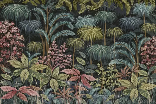 Papier peint photo Feuillage tropical dense avec de grandes feuilles N° w05116