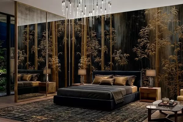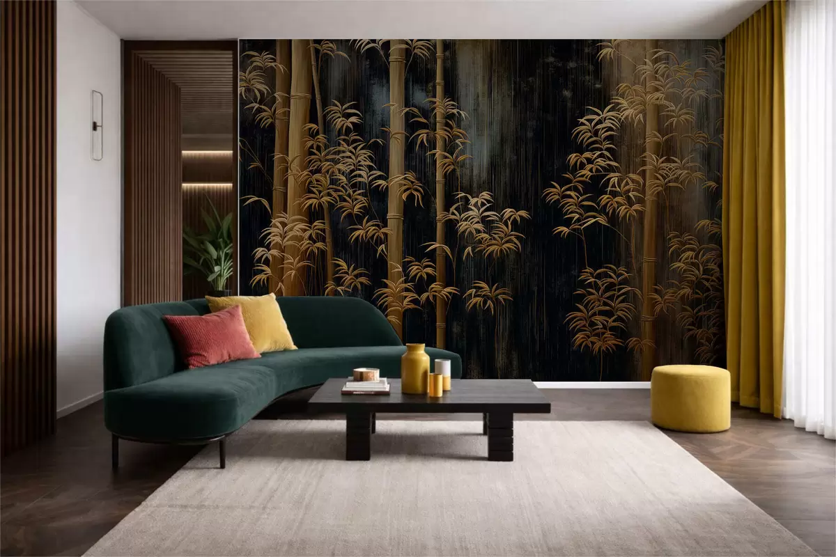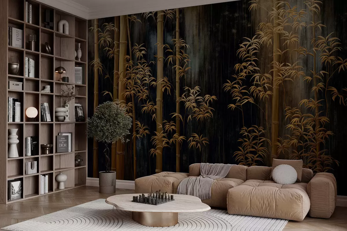 Papier peint photo Bambou foncé sur fond noir N° w05120