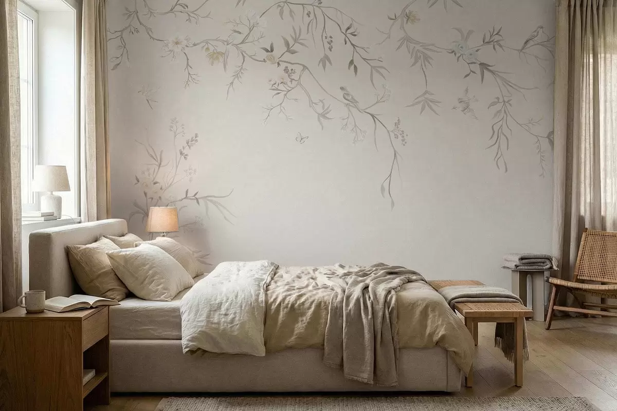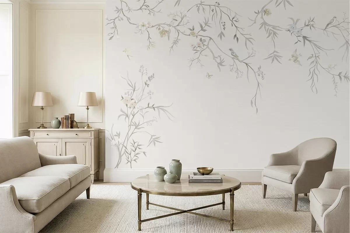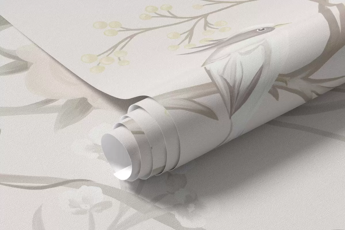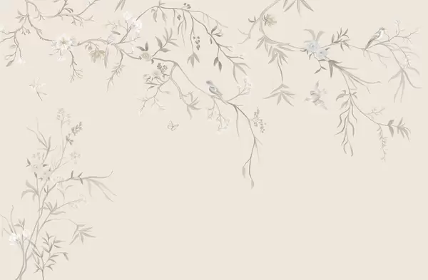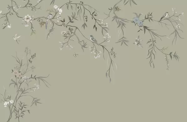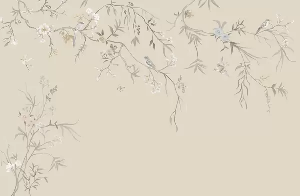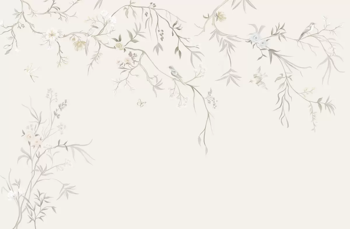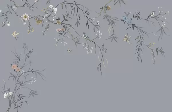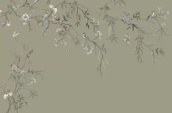 Papier peint photo Fleurs délicates et oiseaux sur fond craie N° w05127