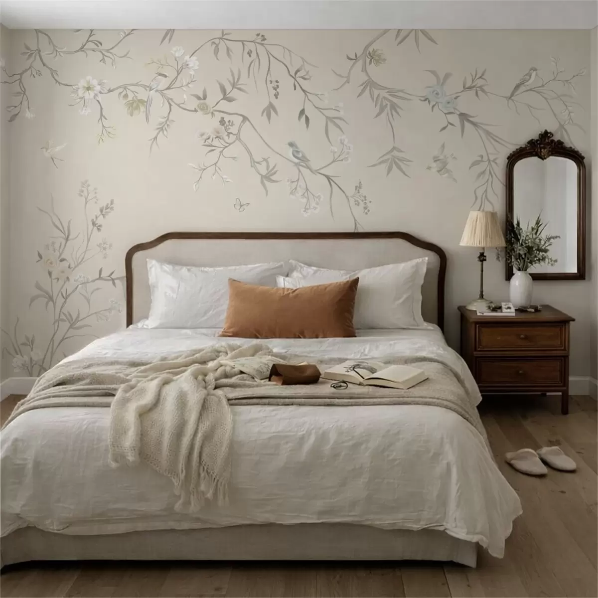 Papier peint photo Fleurs légères et oiseaux sur fond pastel N° w05127v2