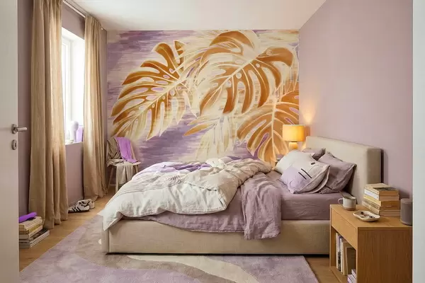Papier peint photo Feuilles dans des tons orange chauds sur fond violet N° w05130v2